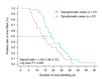 Overall, this shows that asymptomatic individuals have a weaker immune response than symptomatic individuals. It also advocates for social distancing and hand hygiene as asymptomatic individuals do still shed the virus, and for longer than symptomatic people.