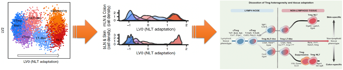 A recent study by Miragaia and colleagues has shown that Treg cells in non-lymphoid tissue (NLT) such as skin and colon expresses a unique set of genes that are required for tissue adaptation which are very different from Treg cells in the lymphoid tissue (LT: specialized immunological tissues) i.e. lymph nodes and spleen. In this study they were able to identifying unique genes that could map out Treg cell trajectories as they transit from a specific tissue to another and thus were able to predict the fate of the cells.