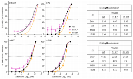 - Zhou Y, Gilmore K, Ramirez S, Settels E, Gammeltoft K, Pham L et al. In vitro efficacy of artemisinin-based treatments against SARS-CoV-2. Scientific Reports. 2021;11.