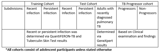 Furthermore, none of the currently available TB diagnostic tests can detect TBI individuals that are likely to progress to ATB as the tests are unable to differentiate between recent infection (likely to progress to ATB) and persistent infection (low risk of progression). In addition, the identification of a blood-based biomarker presents an appealing alternative to traditional sputum-based tests.