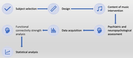Subjects of the study were grouped into (1) healthy controls, (2) participants suffering from schizophrenia who would receive the music therapy and (3) participants suffering from schizophrenia who would continue receiving medicinal treatment for a month. Functional connectivity strength was tested using resting-state fMRI and schizophrenia symptoms using multiple psychiatric tests. The fMRI would show any brain functional activity improvement from baseline and the psychiatric symptom tests would correlate the improvements in brain function to improvement in schizophrenia symptoms.