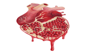 Figure 1: Infographic presentation of pomegranate resembling a human heart with chambers inside and the seeds encased like blood vessels. Pomegranates contain punicalagins that benefit the heart and blood vessels. The fruit lowers cholesterol, blood pressure, and melts away heart blockages.