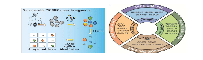 After a limited number of genes were screened. A new improved method was established, the genome-scale CRISPR screening of TGF-beta tumor suppressor pathways in human small intestinal(hSI) organoids. Tumor suppressor genes inhibit all the genes that promote cancer cell progression. It has been found that cancer originating from intestinal stem cells mutation often involves various signaling pathways. APC gene is responsible for Colorectal cancer through activation of the Wnt pathway. The progression of the cancer cells to spread beyond their original site requires the accumulation of additional tumor driver mutations. To prompt the intestinal stem cell differentiation, cell-autonomous (signal transduction) inhibition of the pathway through transforming growth factor-beta (TGF-beta) inactivation, which enables cancer cells tolerance to TGF-beta concentration. Gradually the tumor becomes independent of the signal niche.