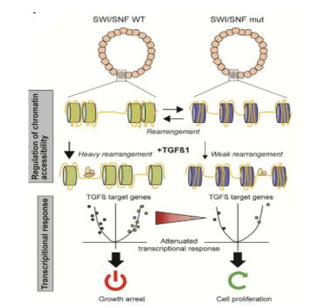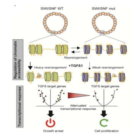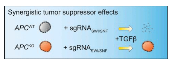 Successful screening was achieved for resistance mechanisms to the tumor-suppressive effects of TGF-b and identified several components of the SWI/SNF chromatin remodeling complex. SWI/SNF investigation shed light onto transcriptomic changes upon SWI/SNF perturbation which affect SMAD cofactors expression, thereby indirectly altering TGF-b target gene regulation and promoting cancer progression. The effectiveness and accuracy of the method gave concise and reproducible results from the stored libraries.