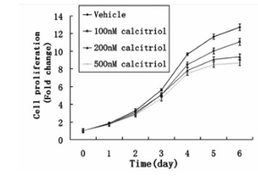 Figure 1: The effect of increasing activated vitamin D doses on cell proliferation. Adapted from Wang