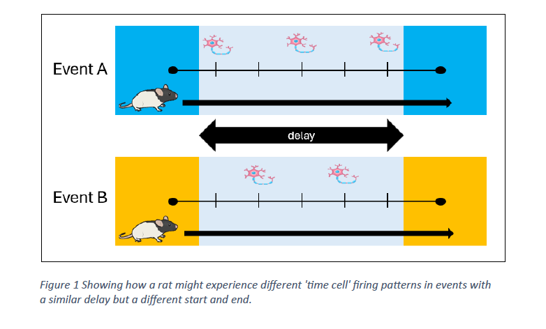 In 2011, researchers (MacDonald et al.) discovered that when a rat was tasked to move through a path with the goal of remembering an object, there were still cells in the hippocampus that fired when the rat was in a delay period. With no external stimuli, the rat was still keeping track of…well, time! This phenomenon was evidence of ‘time cells’, which are similar in function to ‘place cells’ which were discovered and defined earlier. While place cells fire when a subject is in a certain place, time cells fire at regular intervals during a given period. For example, some cells fire at a start period, others at an end period, some at a relative middle and others at various points in time based on an expected delay. When this delay is changed, the time cells adjust their firing to match the new predicted delay.