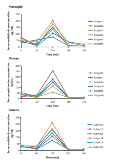 - Sae-Teaw M, Johns J, Johns NP, Subongkot S. Serum melatonin levels and antioxidantcapacities after consumption of pineapple, orange, or banana by healthy male volunteers.Journal of pineal research. 2013;55(1):58-64.