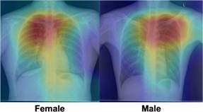 Figure 1. Heatmaps for deep convolutional neural networks focusing on the sternum and upper ribs for prediction of female and male sex