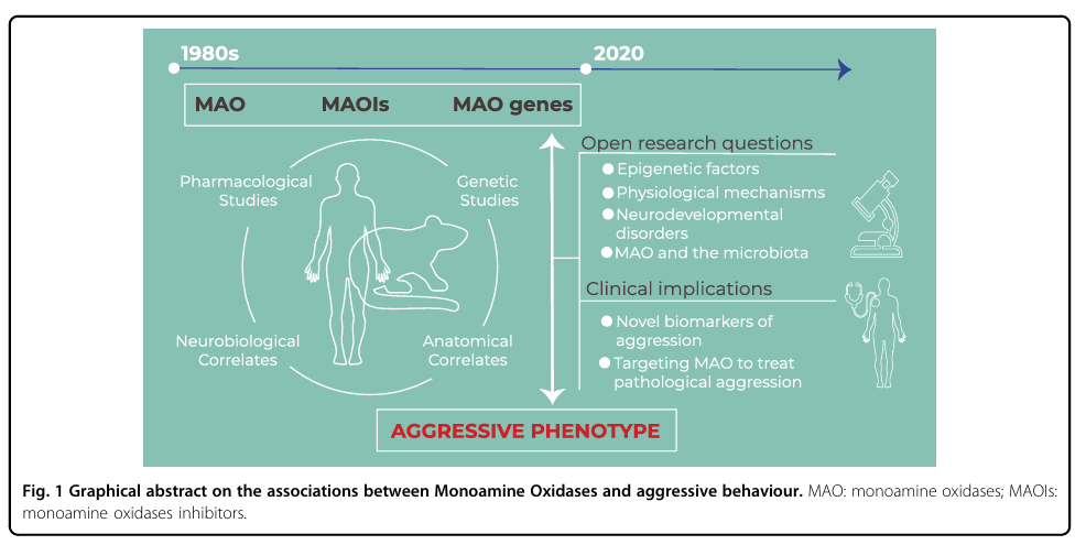 Mentis, A.-F.A., Dardiotis, E., Katsouni, E. & Chrousos, G.P., 2021. From warrior genes to translational solutions: novel insights into monoamine oxidases (MAOs) and aggression. Translational Psychiatry, 11(1), article 130. doi:10.1038/s41398-021-01257-2